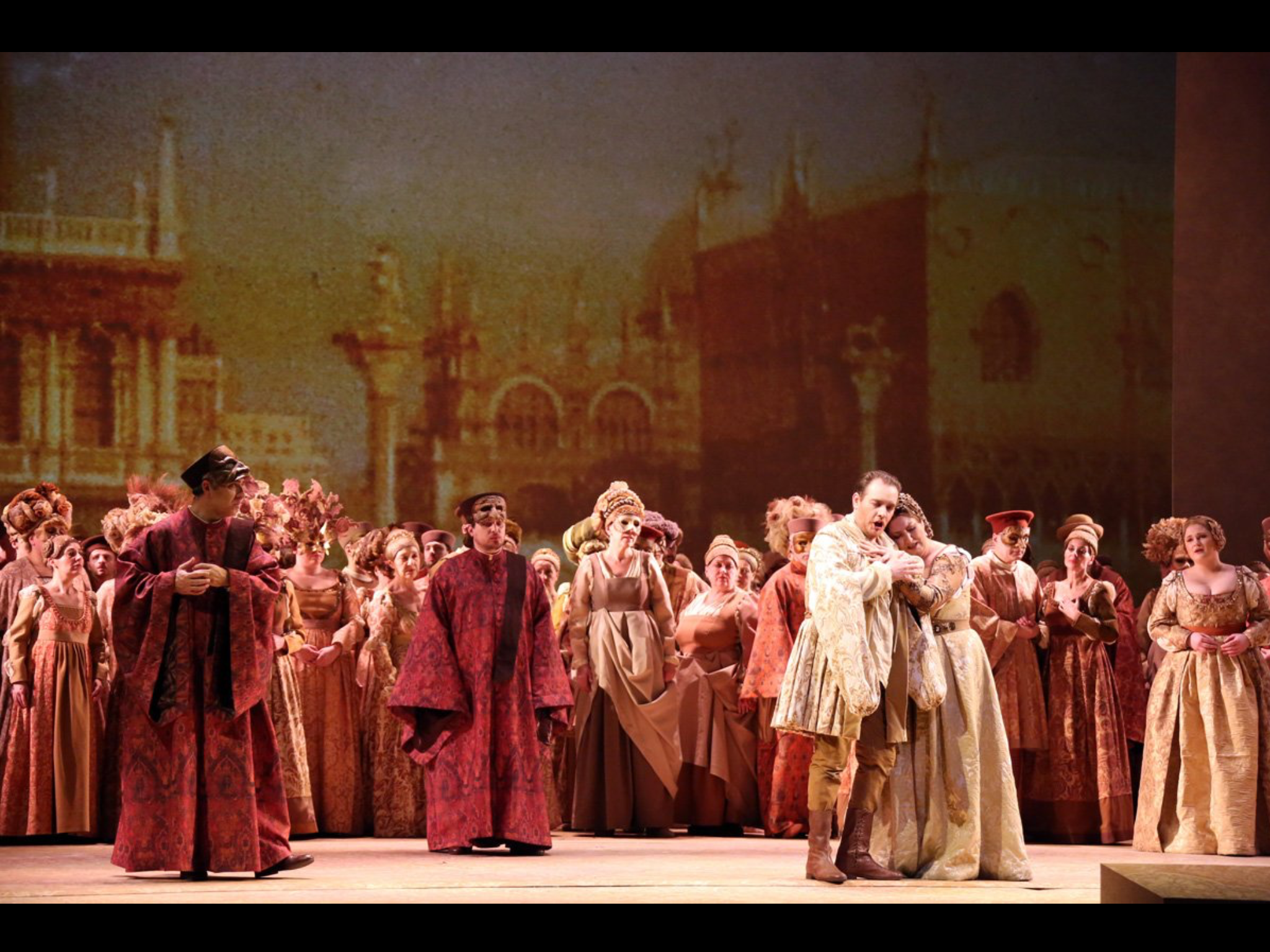 The libretto of I Due Foscari is based on the historical play The Two Foscari by Lord Byron. Verdi has put his focus on interpersonal studies rather than an exploration of societal problems. The main protagonist, The Doge of Venice, Francesco Foscari is torn between paternal love and official duty when his son Jacopo is condemned for murder by The Council of Ten. Jacopo’s wife Lucrezia is convinced of his innocence. They both are helpless even when real murderer’s confession arrives as Jacopo has already died on his way to exile. The Council of Ten demands the resignation of The Doge, and his heart breaks with the announcement of the successor.