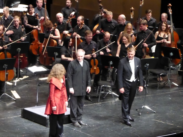 Arriving at Festspielhouse I knew that Stuart Skelton had been rushed for the last minute arrival, as when back in the hotel, he was tweeting that immigration has been just cleared and he is a short flight away from Baden Airpark. Actually, he arrived just a few minutes before performance start and was rushed straight to stage.