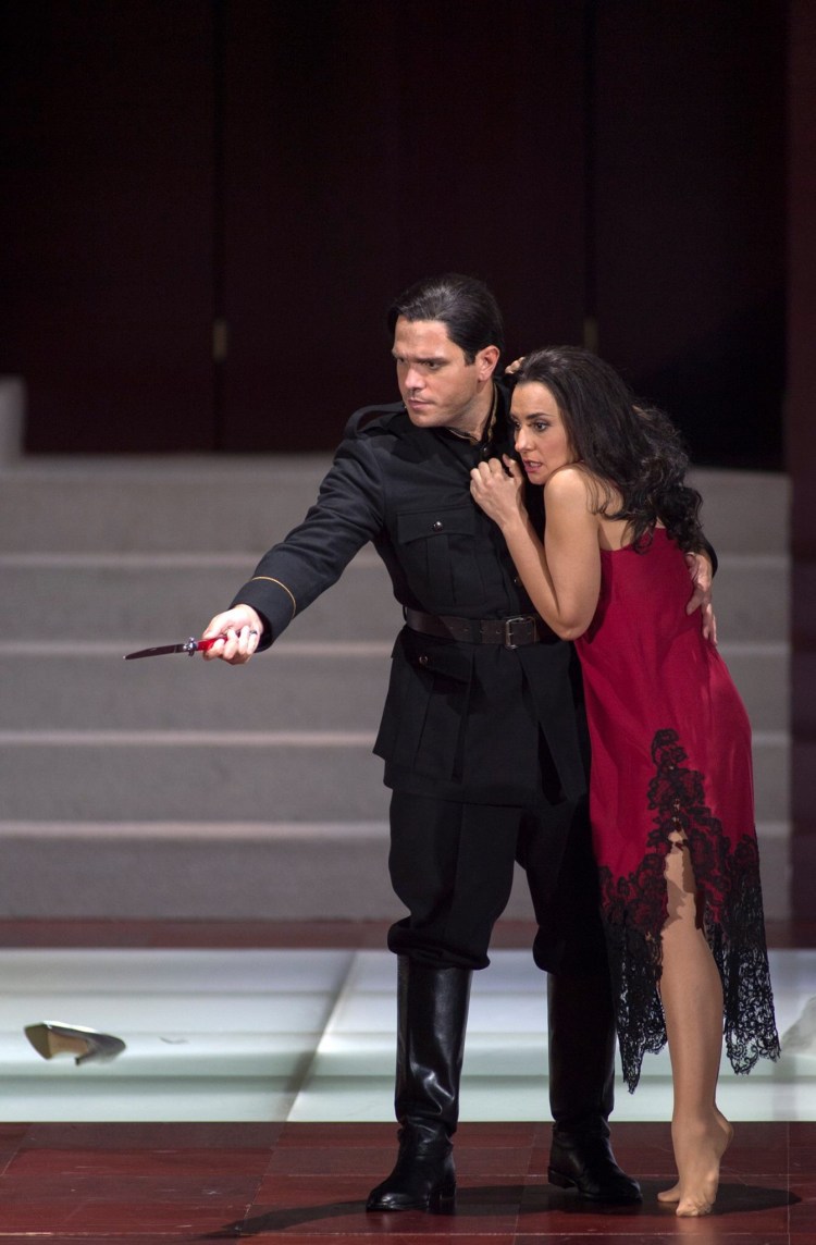 Luca Pisaroni, also a bass baritone, has established a reputation as the exemplary Leporello, the main differentiator being his charismatic acting combined with outstanding vocal performance. Regardless of the fact that role of Leporello has been in his repertoire for quite some time, his interpretation is fresh, energetic and powerful. Every time seeing Luca Pisaroni I admire his stage skills, either it being Figaro, Count Almaviva or Leporello. Vocally impeccable performance, filled with energy and agility – he is a charmer in making, even if until now Leporello was a clumsy servant relying on leftovers and bits and pieces of charm of the Master. I was left wondering – when Luca swapped with Erwin Scrott Figaro and Count on the fly – happened last year in Munich, – would it also work vice versa here with Don Giovanni?