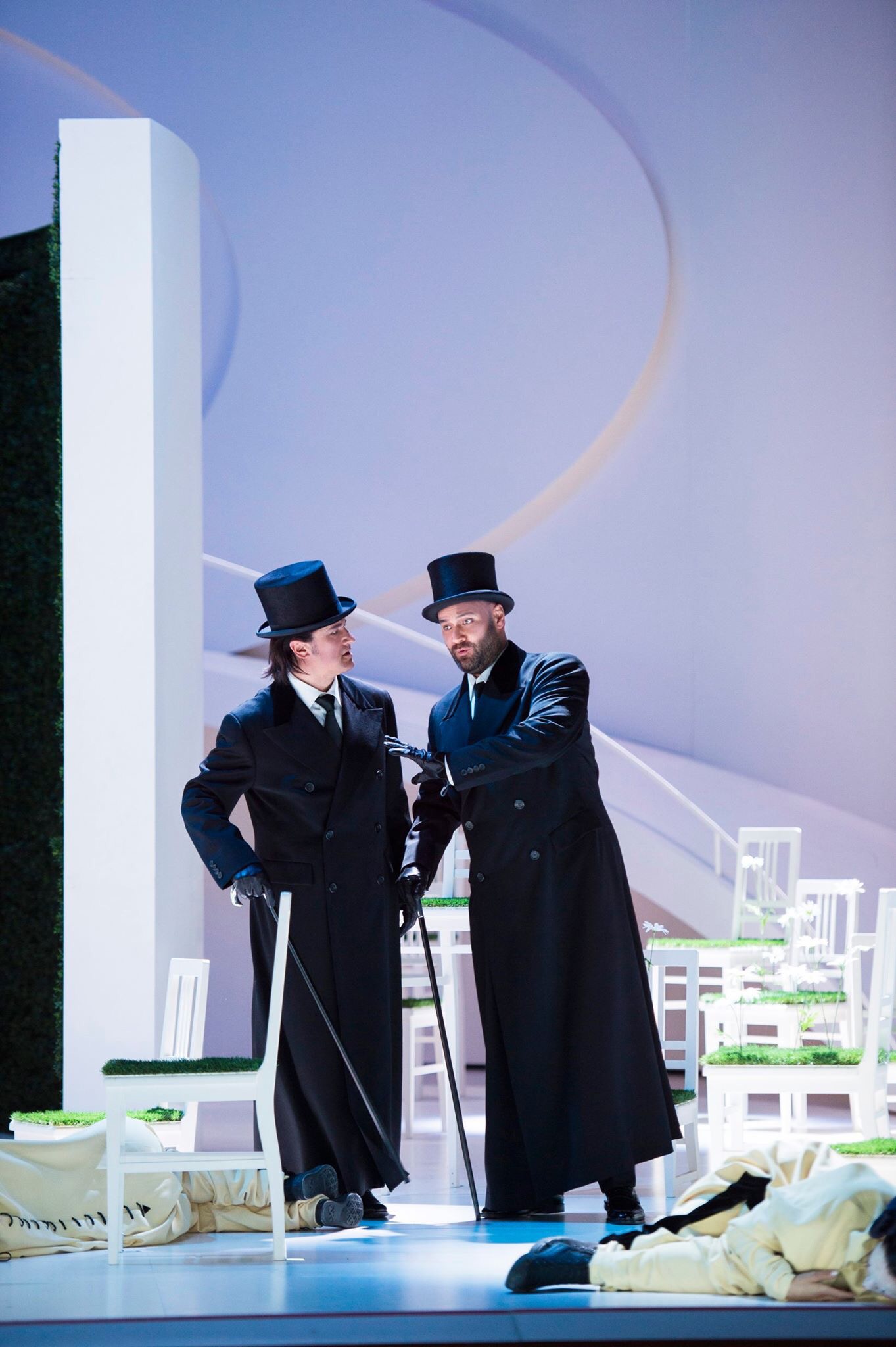 Abdrzakov lives in the role of deceptor and vile agent. He has regal posture and matching vibrant voice with very pleasant timbre. In overall Abdrazakov demonstrated stable well-rehearsed performance with engaging acting. Together with Piotr Beczala, they created a convincing duo of mental and moral challenges faced by each of us when it might be difficult to choose which one is right if they both look the same and are both so attractive.