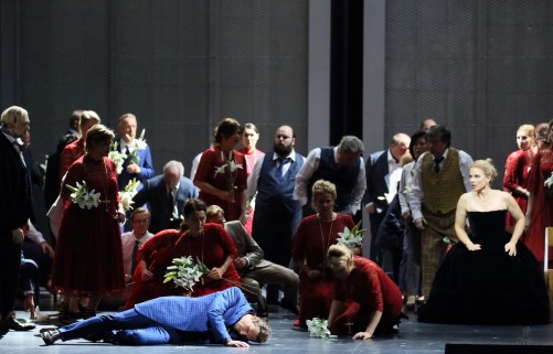 Matthew Polenzani, Elīna Garanča, Mariusz Kwiecien and chorus. Photo W. Hösl