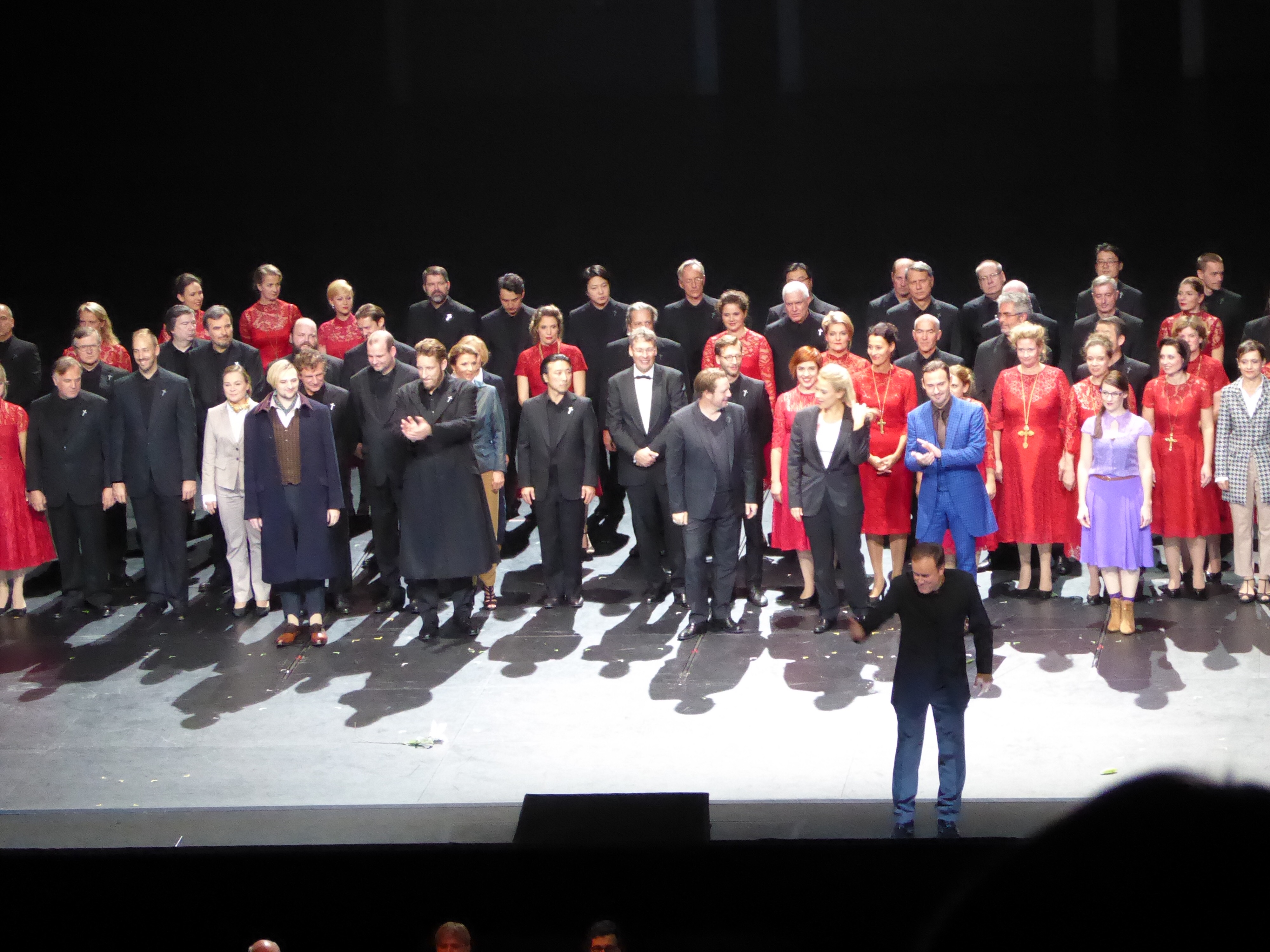 The excitement was in the air, and just looking around you can notice an obvious difference in the audience of the premiere night – most of the people know each other, greeting, chatting and looking for the rooms where their designated reception is held. The main sponsor of BSO, The Linde Group, gathers their crowd at the 1st Rang ballroom. Nice gowns, tuxedos, BR Klassik live transmission aired from the 1st Rang lobby with interviews of director and contributors.