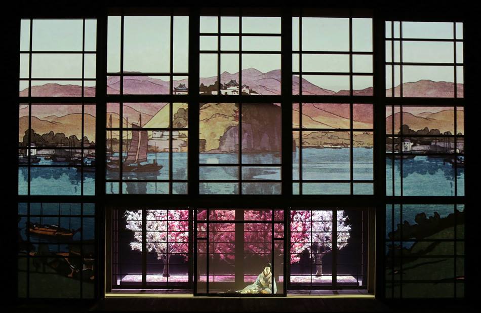 One of the main contributors to the success was also the team led by latvian director and designer Alvis Hermanis supported by reliable peers on sets and costumes, as well as choreography. Over the years of being involved with opera direction Hermanis has developed his signature style, mostly based on striking visuals, thus forcing the audience to absorb and complement proposed pictures. The effect is achieved by masterful usage of videoprojections and filigree hand paintings by Kristīne Jurjāne, who usually extends her reach also into wardrobes. Her signature style is based on scrupulous research and precision in details, for Madame Butterfly detailed studies of period drawings and paintings were carried out, and even minor props for extras and chorus like the fans in off-white / light ivory were procured in Japan to ensure authenticity. It has been said that success lies in details, and visual impression of the production strongly supports the statement.