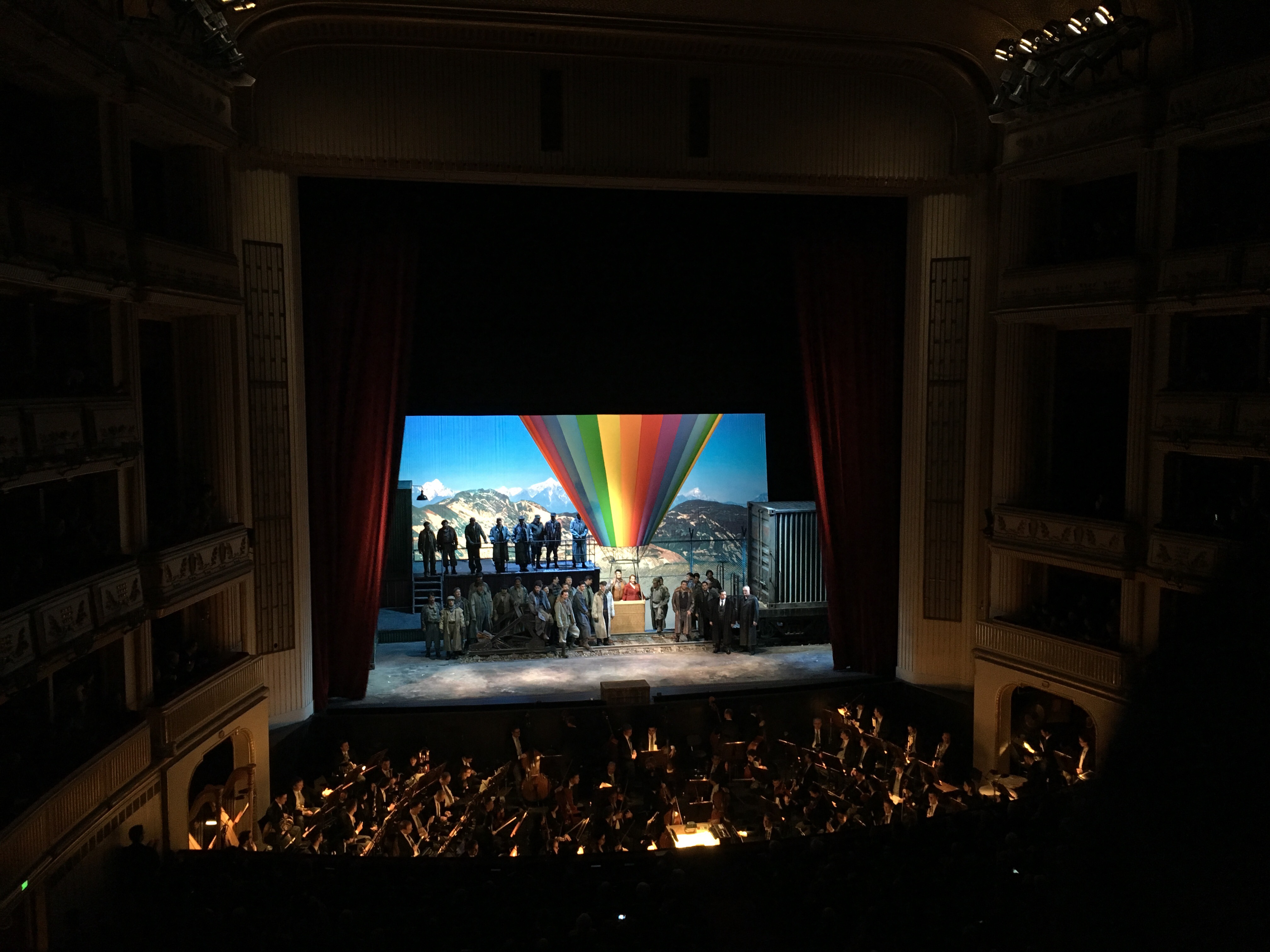 The production by Marco Arturo Marelli is relatively traditional, depicting wild west with picturesque mountains in the background and basic accommodation and social infrastructure of gold miners in the front – just adding the colourful accent of hot-air balloon as evacuation means of the happy couple to the unknown future. This is so unbelievable as happy ending of the opera as such, therefore does not conflict with the concept in general. The fun part was that I have seen two productions by him in the same house on two consecutive nights.