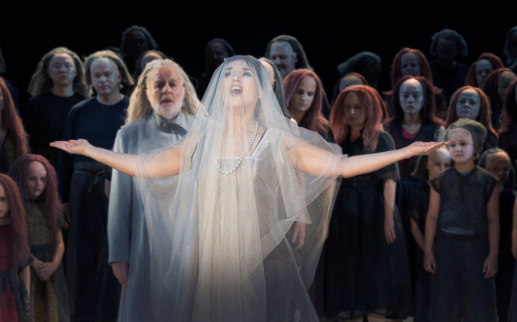 Wim Wenders has treated libretto text with precision, – and as the action happens on some distant, probably equatorial island (guess – Sri Lanka), the darkness and night dominate the mood, thus lights are the main colours to use in combination with smart video projections. At one point it felt that there is too much of the video-clip aesthetics used, but the overall concept and effect fully justified the approach.