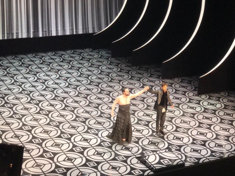 The audience expressed their appreciation as well as displeasure enthusiastically, as mentioned earlier, some boos towards Stundyte seemed unjustified, while split reaction towards creative team was predictable – at the same time, there were quite a lot of people who obviously enjoyed the concept proposed by Neuenfels. In general the performance was thought provoking and challenging the audience to rethink acquired stereotype who was Salome, while probably this is not a production I would like to attend again and again in order to find new layers of meaning. But – time changes tastes and perception, so never say never. Looking forward to Neuenfels reading of The Queen of Spades in Salzburg this August with Mariss Jansons at the pit – the ticket confirmation just arrived!
