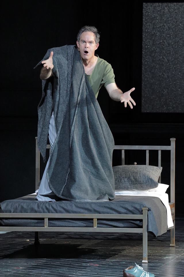 That was not the case for Iago in simple t-shirt and sneakers, scheming and acting politician, arranging his agenda behind the back of main protagonists and steaming from hate internally. All this was painted by Gerald Finley – even if he has lighter shade of baritone than typical Iago might sound, it benefits greatly to close the vocal distance between Iago and Otello, especially as Kaufmann’s voice has a bit darker shade. Even if Otello is an outcast, he is not so different from that dark hero, who is ready to cheat, betray and murder.