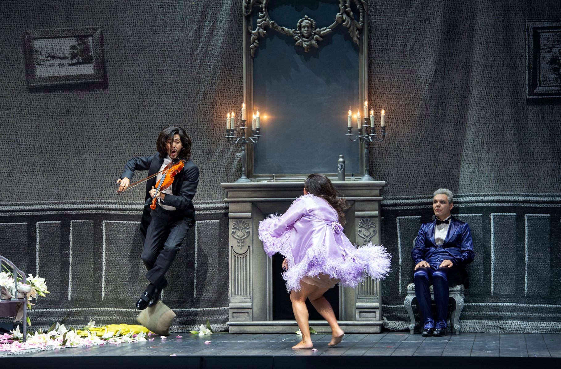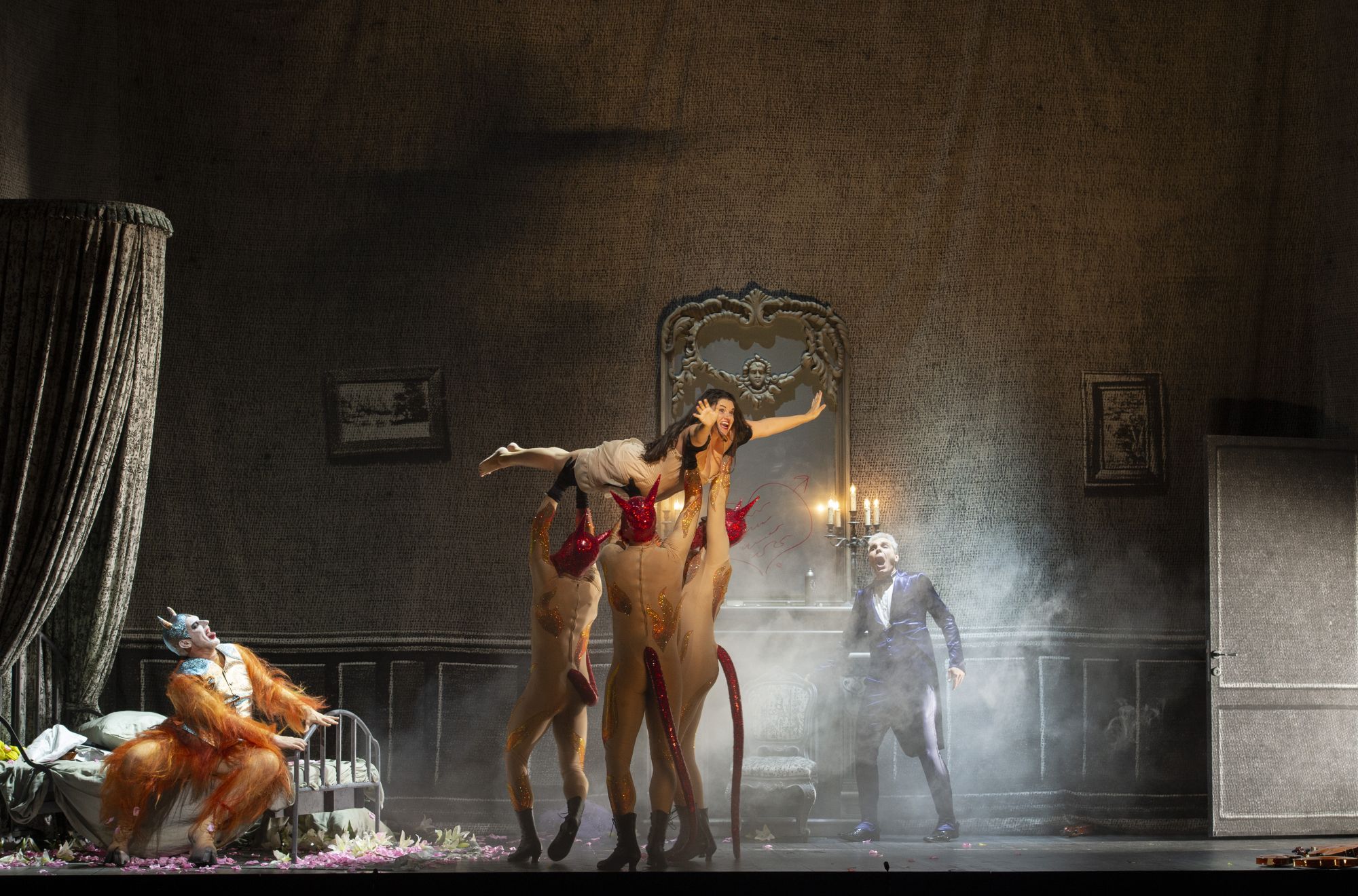 Another theme both in the operetta itself and Kosky interpretation is about transformation. Jupiter as a god can transform himself and become either a fly or a golden shower, also Pluto can embody any character of his liking. For us, humans, mostly death provides such an opportunity and we donot know where it will bring us – to heaven or to hell. Offenbach presumes that the hell is much more interesting place to be, also offering opportunity to further transformations. In her wordly life Eurydice wants to change her fate and become someone else – while actually it becomes possible only after she experiences death. Orpheus is condemned to his own self until death liberates him, and even the journey to reclaim his unloved wife does not transform him into better or different person.