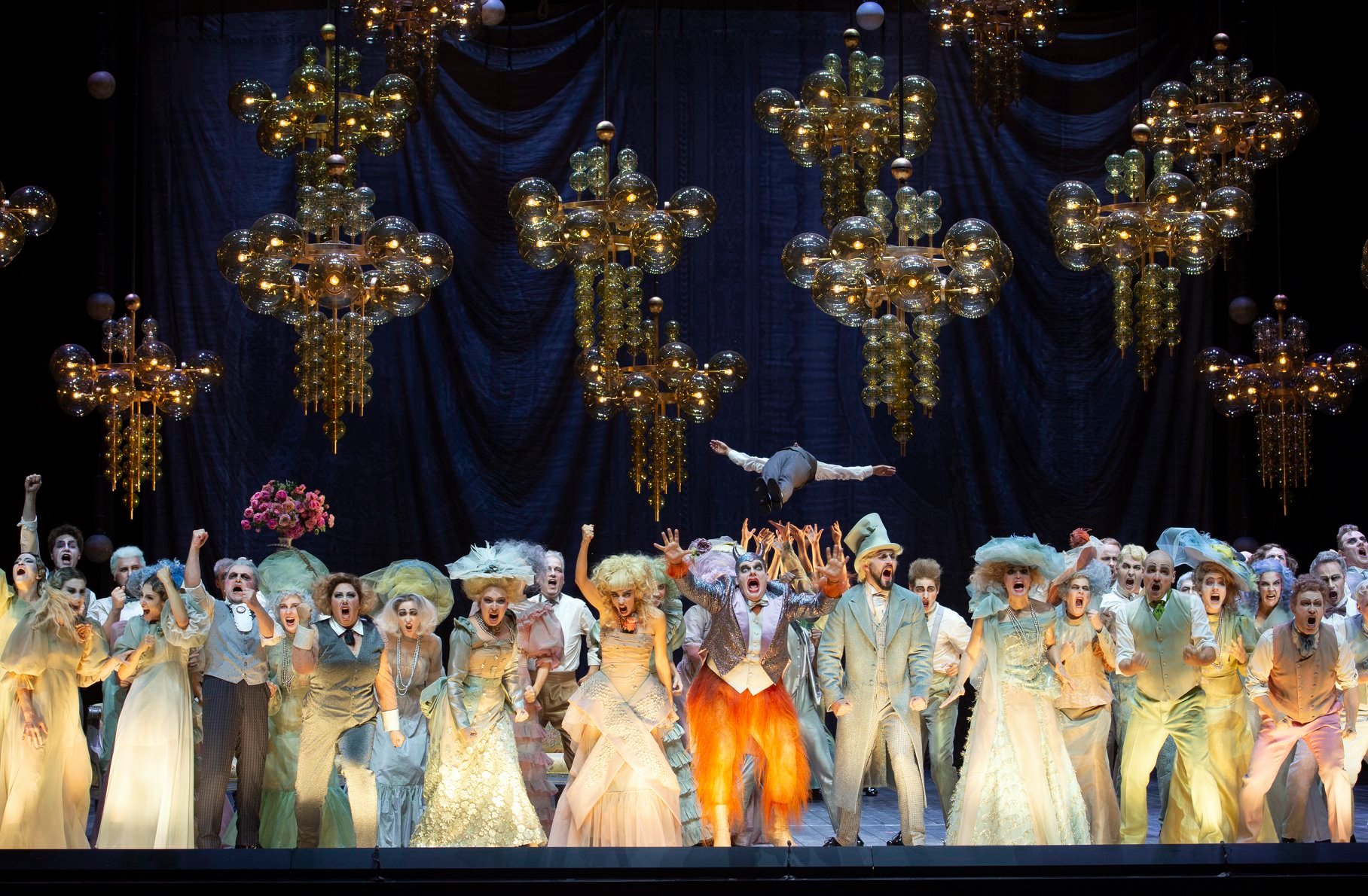 The ensemble was having at least as much fun as the audience! Especially smart move by Barry Kosky was the way how the spoken dialogue was integrated in the production since for me personally this is the major turn-off in any operetta, even if the dialogue is in my native tongue. Here the spoken text supposedly being French has been “sound dubbed” by John Styx, played by Maxx Hopp from Berlin Komische oper ensemble. He is also speaking all the text part of all characters, relieving singers form unfamiliar and complicated task to be also spoken word actors.